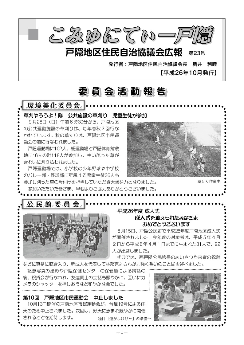 ⼾隠地区住⺠⾃治協議会